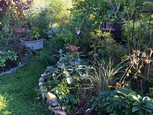 Yvonne: In der Zeit vor meinem Garten habe ich waghalsig einen Dachvorsprung am Haus zum Balkon umgestaltet und genutzt. Die Sehnsucht nach einem Garten wurde jedoch immer größer und die Balkonfläche, die durch üppig wachsende Pflanzensammlungen gefühlt wurde, immer kleiner. 2007 ergab sich die Möglichkeit einen Kleingarten zu übernehmen. Damit nahm die Entwicklung ihren Lauf. Ich mache es kurz und zitiere den berühmten Staudenzüchter und Gartenphilosophen Karl Förster: „Wer der Gartenleidenschaft verfiel, ist noch nie geheilt worden.“ Dieser Aussage ist meiner Meinung nach nichts hinzuzufügen. Meine Gartenparzelle hat eine lange Metamorphose von einer Einöde aus Beton, Rasen und drei Bäumen zu einer reichgestaltigen „Scholle“ hinter sich. Sie verändert ihr Gesicht jedes Jahr wieder ein Stückchen. Ich habe das Gefühl, in dem Garten einen guten Freund gefunden zu haben, der mein Innerstes nährt und mich so reich beschenkt, dass ich jedes Mal glücklich und zufrieden nach Hause fahre. Gärtnern heißt, geduldig sein. Die Erkenntnis, dass ein Garten nie fertig ist, ist ein gutes Credo in der Passion einen Garten zu entwickeln. Der „störrische“ Minutenboden wurde von mir über Jahre sorgsam aufgebaut. Mittlerweile hat er eine Struktur, mit der sich besser gärtnern lässt. Pflanzen und Pflanzenstandorte wurden getestet, verschiedenste Gemüsesorten ausprobiert, um sie einfach mal kennengelernt zu haben – beziehungsweise, um diese weiterempfehlen zu können. Ich begeistere mich dafür, mit anderen gärtnernden Menschen Pflanz- und Saatgut zu tauschen. Ich liebe es, Pflanzen zu sammeln und wie eine Perlentaucherin des Öfteren etwas seltenere und vergessene Stauden und Gehölze zu finden, sie in den Garten zu holen, um diese zu kultivieren und zu beobachten. Und um zu schauen, ob und wie sie von der Tierwelt angenommen und besucht werden. Ich habe über die Jahre bemerkt, dass sich mehr und mehr Tiere in meinem Garten eingefunden haben, um sich dort zu sonnen, zu trinken, zu futtern, zu brüten, zu vermehren, zu singen, zu übernachten, zu unken, zu summen und zu brummen. Als nächstes möchte ich Fledermausquartiere an der Hütte anbringen, die Forsythie gegen einen für die Insektenwelt wertvolleren Frühblüher austauschen und eine neue kleine Wasserstelle anlegen. Ich freu mich schon darauf!