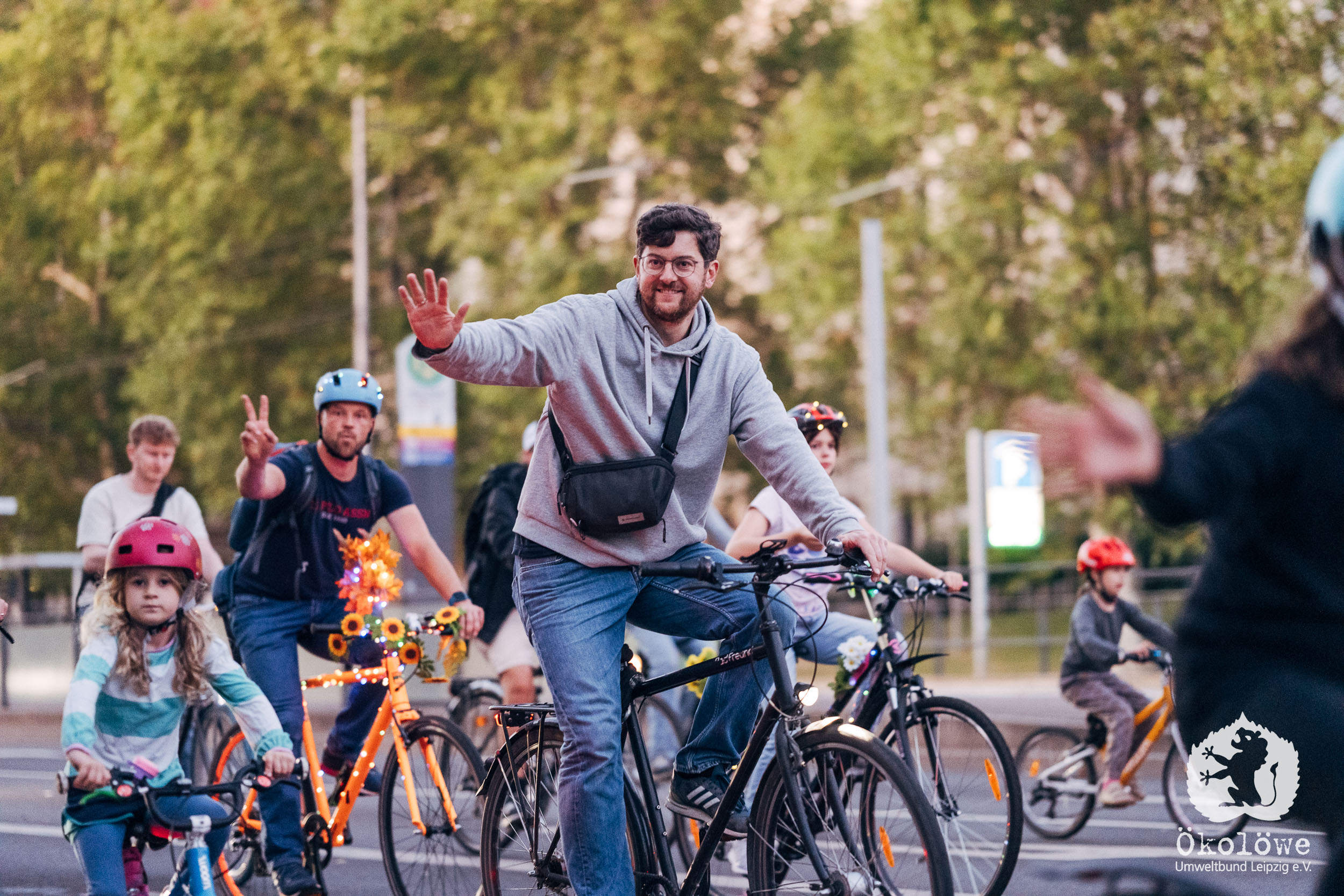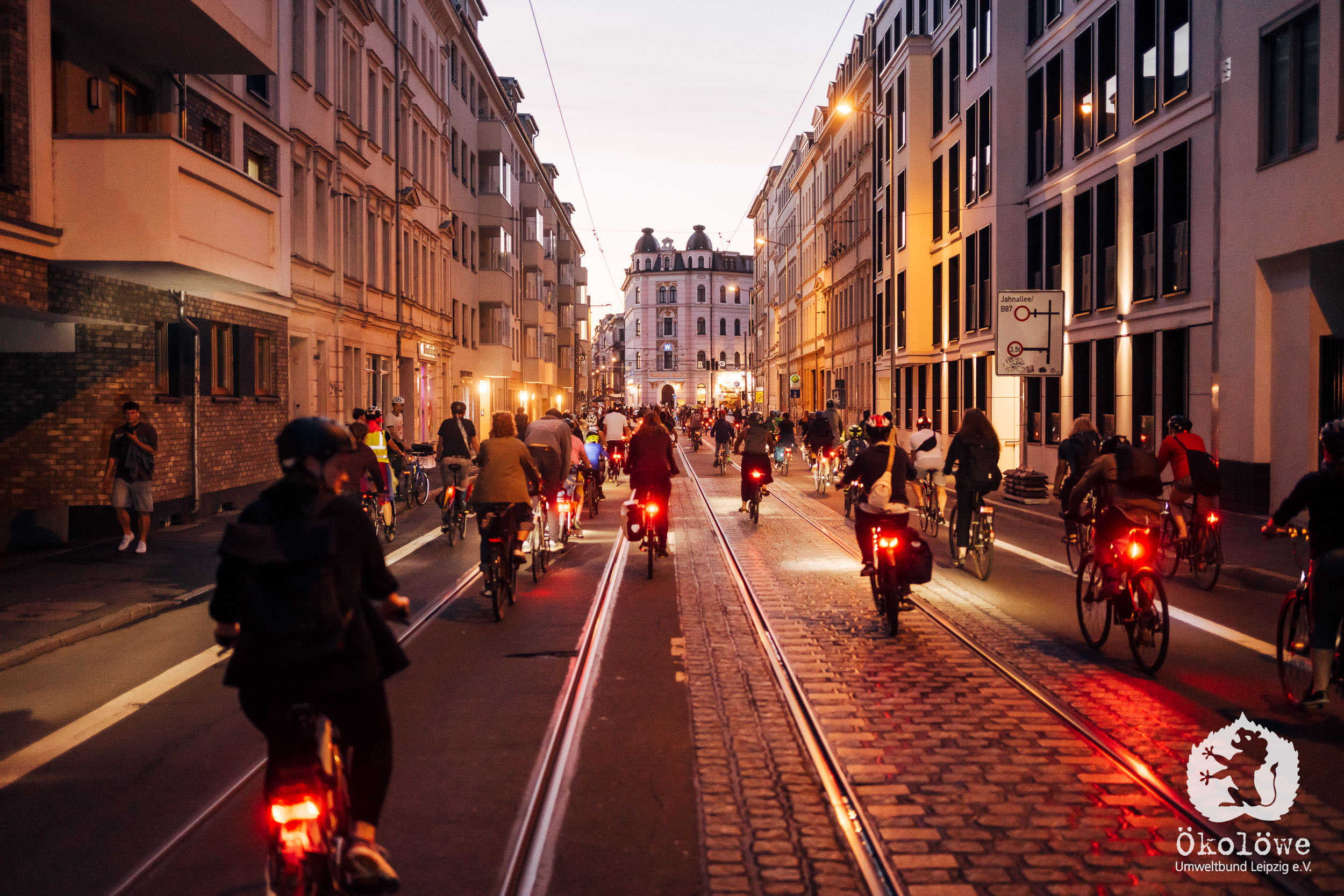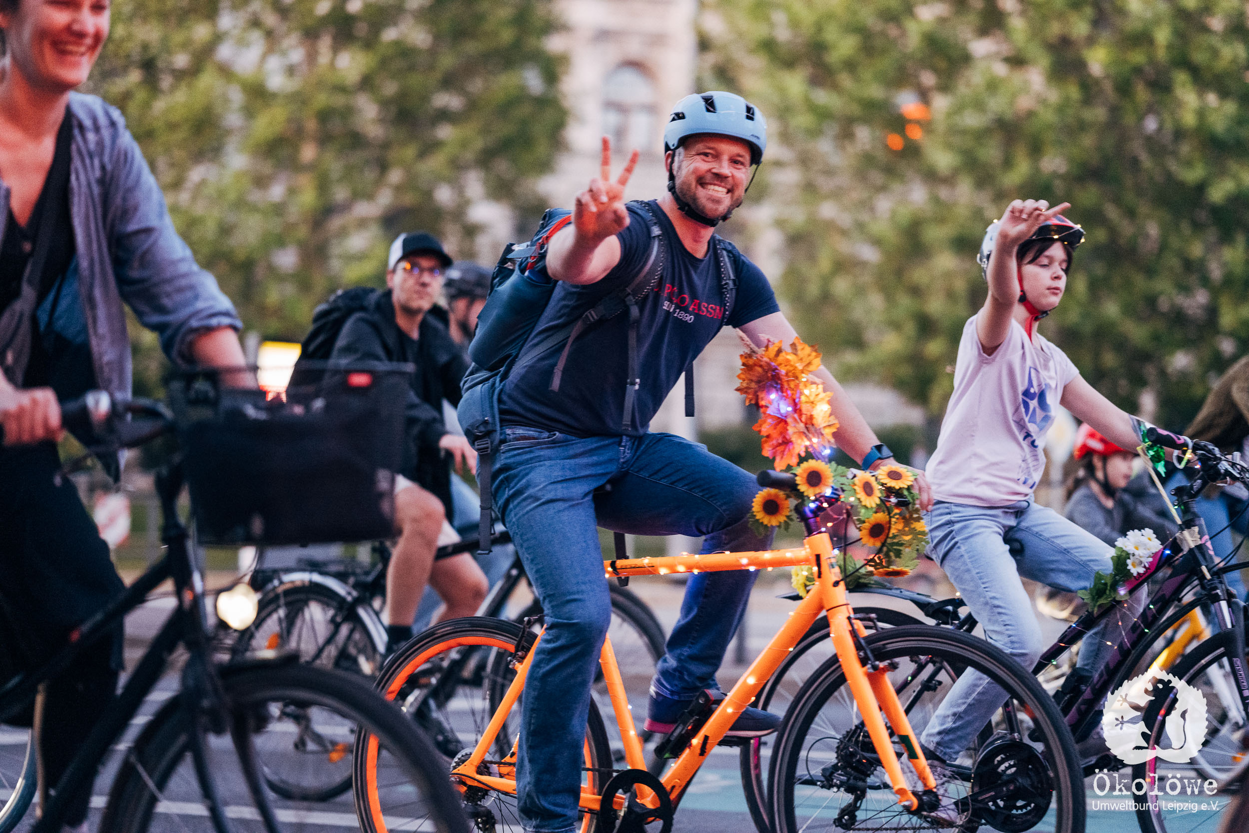 Mit der Leipziger RADNACHT wollen wir Ökolöwen gemeinsam mit tausenden Leipziger:innen ein Zeichen für eine fahrradfreundliche Stadt setzen. Dafür verwandeln wir die Straßen, die während des Events für Autos gesperrt sind, in ein Meer aus Lichtern, Fahrrädern und fröhlichen Menschen. Wie? Indem wir die Teilnehmer:innn ermutigen, sich zu verkleiden, ihre Fahrräder mit Lichtern zu schmücken und ihre Musikboxen mitzubringen - damit die Stadt unser Zeichen nicht nur sieht, sondern auch hört.